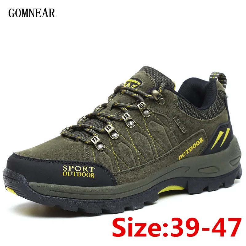 HOT Sale GOMNEAR Men's Hiking Shoes Male Outdoor Shoes Hiking Antiskid Breathable Trekking Shoes Hunting Tou